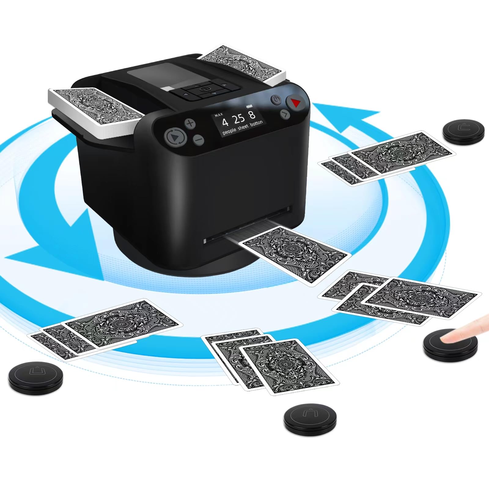 The automatic card dealer makes dealing hands smoother and more fun, especially during group games.