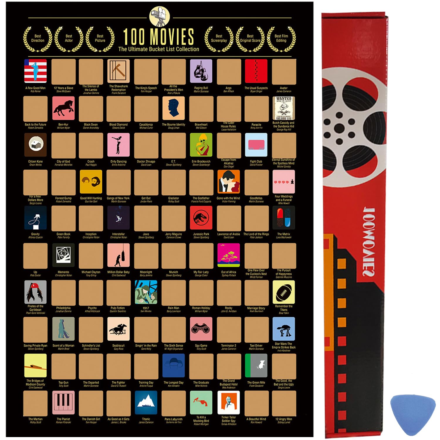 The Travel Revealer Top 100 Movies Scratch Off Poster offers a meticulously curated list of cinematic gems, blending timeless classics with modern blockbusters.