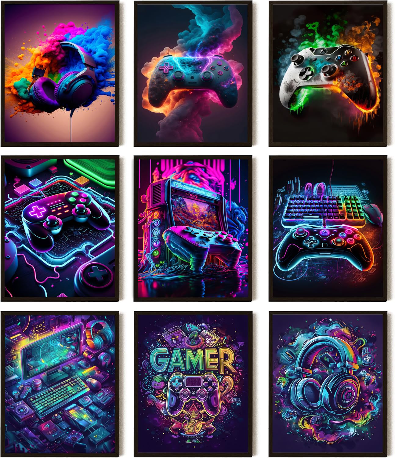 These vibrant neon-themed posters truly bring your gaming space to life with their eye-catching designs.